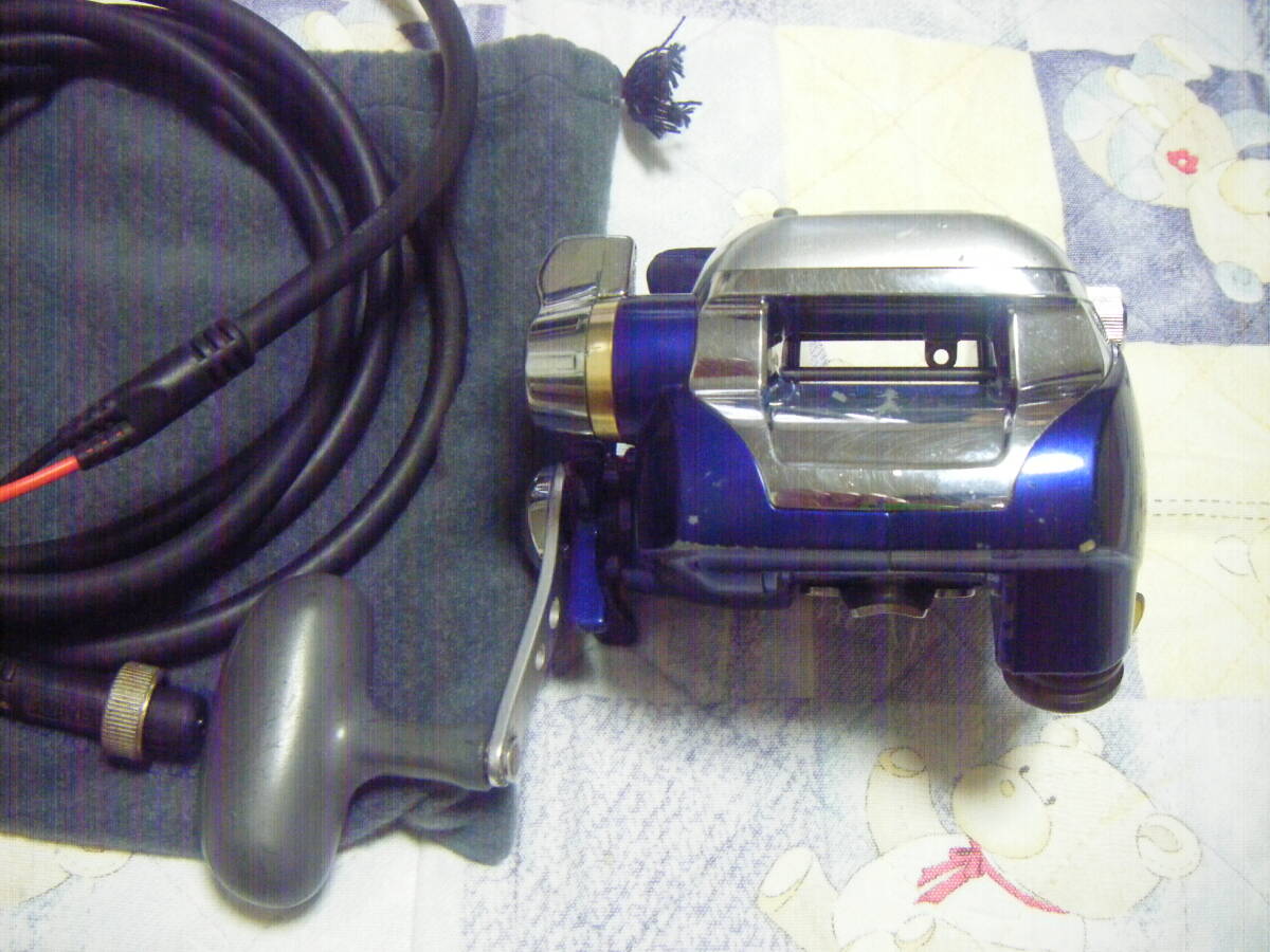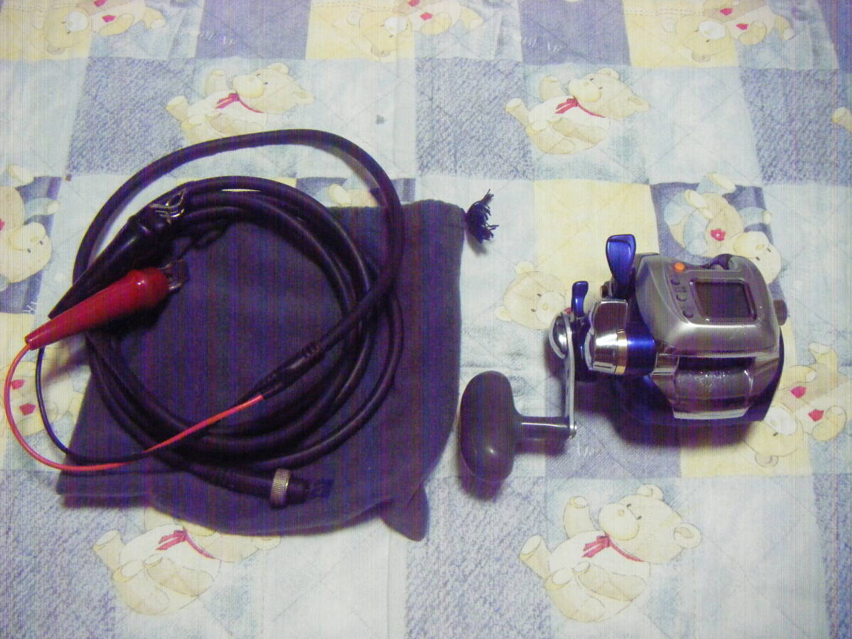 DAIWAの『HYPER TANACOM 400FBe』、USEDです。電源コード付です。PEライン(4-5号程度)付です。下巻していません。スプール一杯に巻いています。らいの結び目が3ヵ所御座います。稼働確認済です。リール袋在ります。スプールに傷み、前方の銀色部分に傷み、全体的に使用感があります。御了承下さい。使用に問題はありません。郵パックは60cm持ち込みます。輸送中の補償は御座いませんが、定形外郵便(1350円・地域に拠っては郵パックが安い場合が御座います)も対応致します。