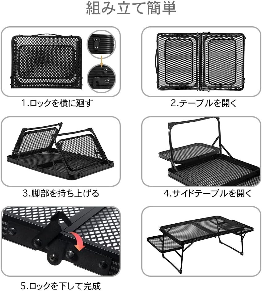 キャンプ テーブル メッシュ サイドテーブル付き アウトドア 軽量 折り畳み コンパクト 耐熱 焚き火 BBQ 登山 アルミ 携帯便利 収納袋付き [浏览原始页面]