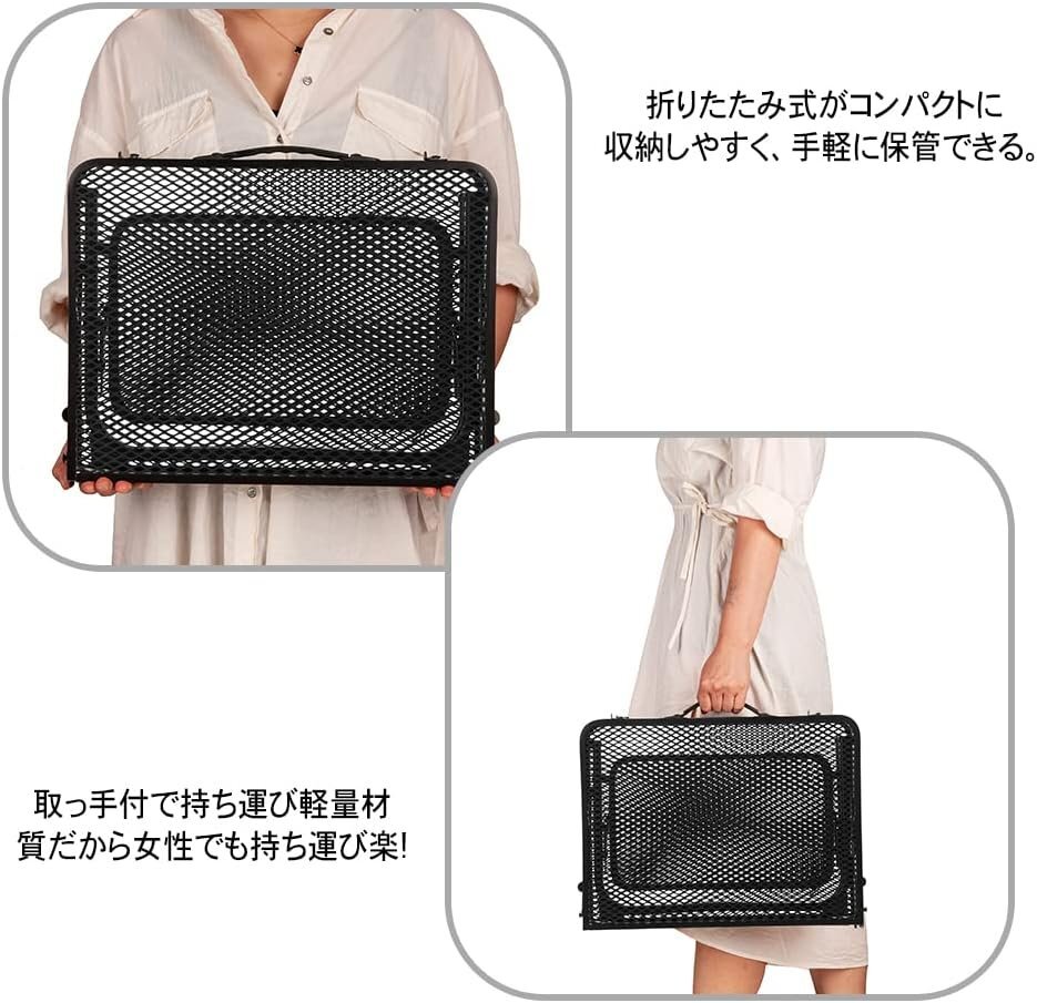 【メッシュ天板】メッシュ天板:天板は黒の鉄メッシュ、粉体塗装は簡単にははがせません。メッシュ天板の耐熱温度は300℃まで達し、錆びにくい、水と熱にも強いので、おしゃれな見た目でお手入れも簡単、汚れても丸々水洗いができ、実用性と耐久性を両立しています。