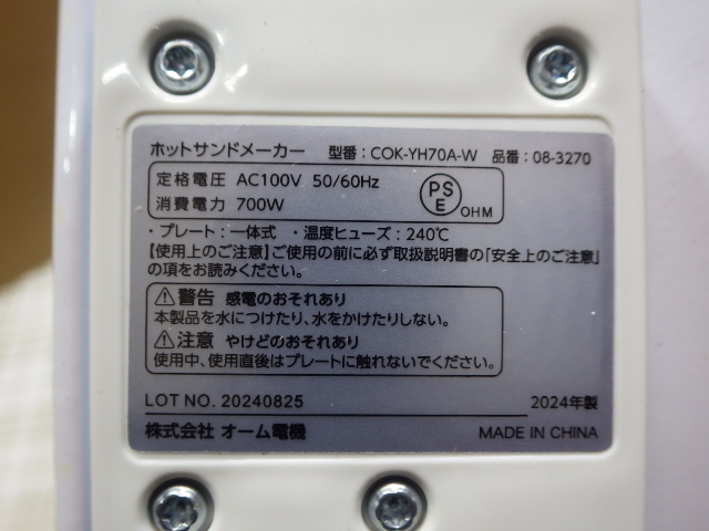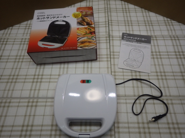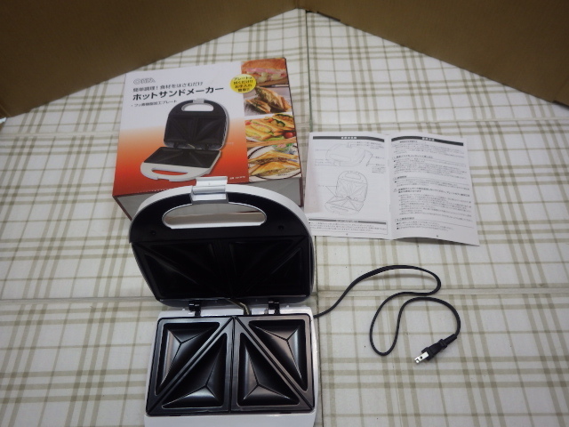 ほかにも出品しておりますので見て行ってください。 ←ここをクリック ホットサンドメーカー 株式会社オーム電機 一度のみ使用でとても綺麗です。 中古の品なのでノークレーム、ノーリタンでお願いします。 落札後はNC、NRにてお願いします。 発送 着払いのみ 詳細な色や型式等詳細は解りませんので、写真でご判断ください。 傷等は写真にてご確認ください。 詳細や付属品等は写真にてご確認ください。 注意!!写真に写っている物が全てで、それ以外は一切付属いたしません。 | ||||