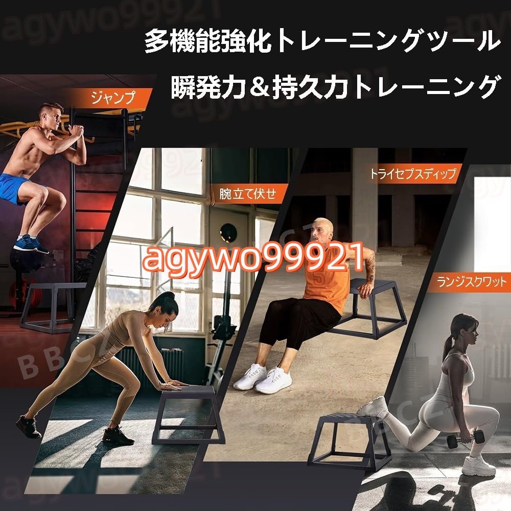 【複数サイズ対応】当社の製品ラインナップは非常に豊富で、お客様が自由に異なるサイズを選んでトレーニング可能です。このプライオメトリックトレーニングボックスは初心者からプロフェッショナルまで全てのレベルに対応し、ホームジムの理想的な選択肢です。 【多機能強化トレーニングボックスで理想の体型を手に入れよう】複数サイズを自由に組み合わせ可能。400kgの超強力耐荷重能力で、多様なトレーニングニーズに対応します。【商品詳細】レベル1:上部幅33cm、下部幅38cm、高さ30cm、重量:5.5kgレベル2:上部幅36cm、下部幅45cm、高さ45cm、重量:7kgレベル3:上部幅39cm、下部幅52cm、高さ61cm、重量:8.5kgレベル4:上部幅42cm、下部幅59cm、高さ75cm、重量:10kgレベル5:上部幅45cm、下部幅66cm、高さ90cm、重量:12kgこのトレーニングボックスは底部に4つのゴムパッド、上部にはテクスチャードシリコン表面を採用。安定性とグリップ力を確保し、安全かつ効果的なトレーニングを実現します。鋼管表面のパウダーコーティング処理が美観と耐久性を両立。個別のトレーニングプログラムに最適で、肩・腕・胸・臀部・脚部の筋力強化からコアスタビリティ向上までをサポート。ボックスジャンプ、ステップアップ、腕立て伏せ、スクワットなど多種目に対応。