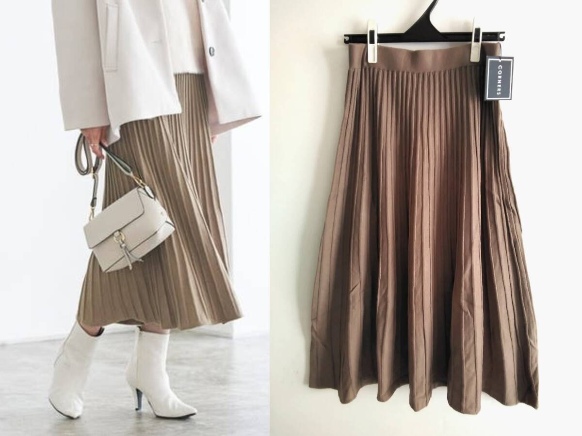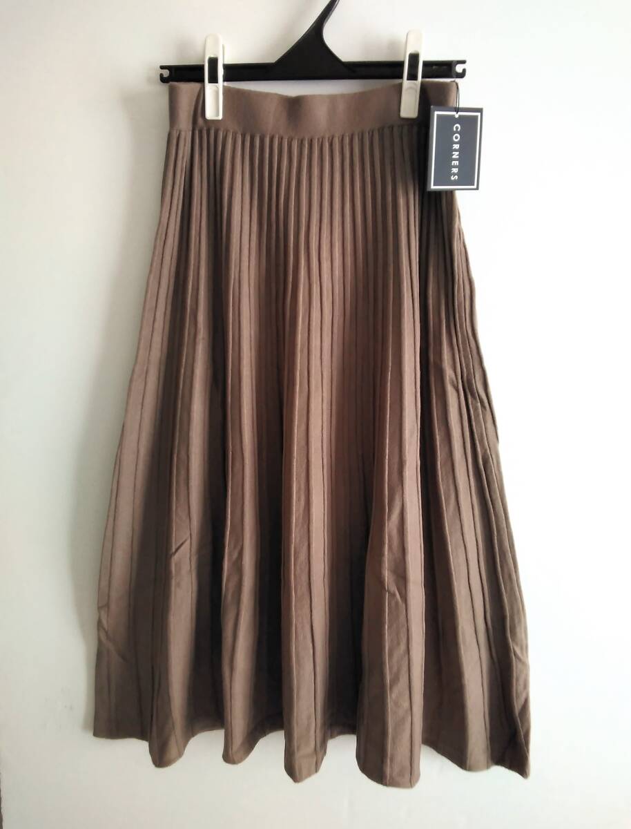 新品★CORNERS プリーツフレアーニットスカート モカ ブラウン Lサイズ コーナーズ