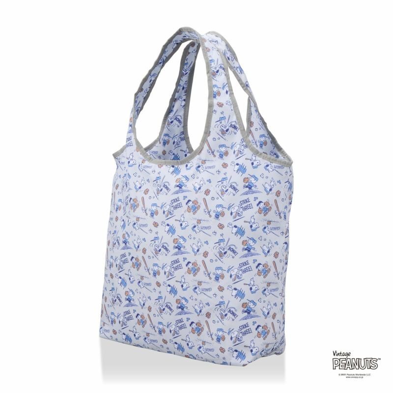 送料無料 スヌーピー エコバッグ SNOOPY 保冷バッグ 保温 チャック付 マイバッグ 折りたたみ PEANUTS 0416 可愛い グレーベースボール O-72