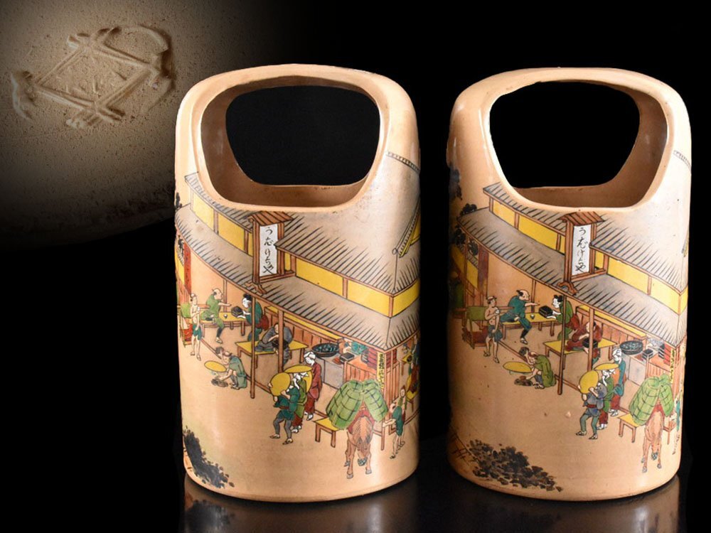 | 商品名 | 【雲】某資産家買取品 古清水 色絵東海道五拾三次図花瓶 花入 一対 高さ24cm 古美術品(手焙花器花瓶壺)CY2237 OTgvbhsn |