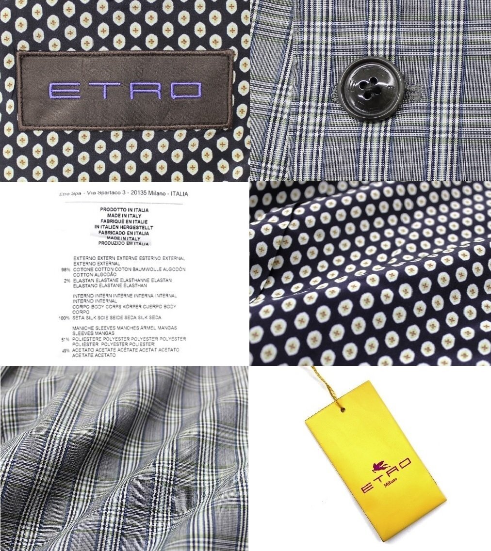 38万新品◆52=L◆【ETRO】エトロ◆イタリア製 コットン クラシカルタータンチェック柄スーツ ライトグレー×ブルー 薄灰