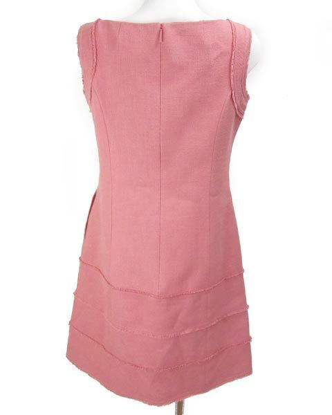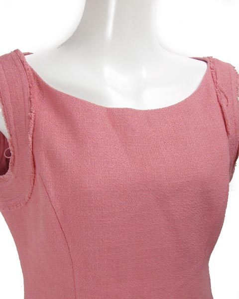 濃い目のイチゴミルクのような可愛いお色目のワンピース。仕立てやお生地の良さで、高級感がわかります。上品で、着るだけでお顔周りが華やかになります。あらたまった場所やお出かけにおすすめです。