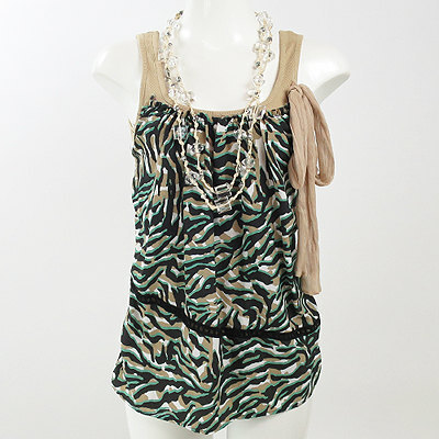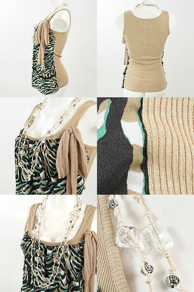 | 迷彩チックなカラーのアニマル柄と シフォン素材のリボンが付き 爽やかなクリアのネックレスがついた トップスです。 シンプルボトムをあわせるだけで おしゃれコーディネート完成◎ バスト約63cm 着丈約51.5cm 肩幅約27cm 【サイズ】:(XS) 【素 材】:(ポリエステル100% 綿100%) 【 色 】:(ベージュ、グリーン、黒) 【程 度】:(A) **管理番号** 16150519-011 211 029 | ||||