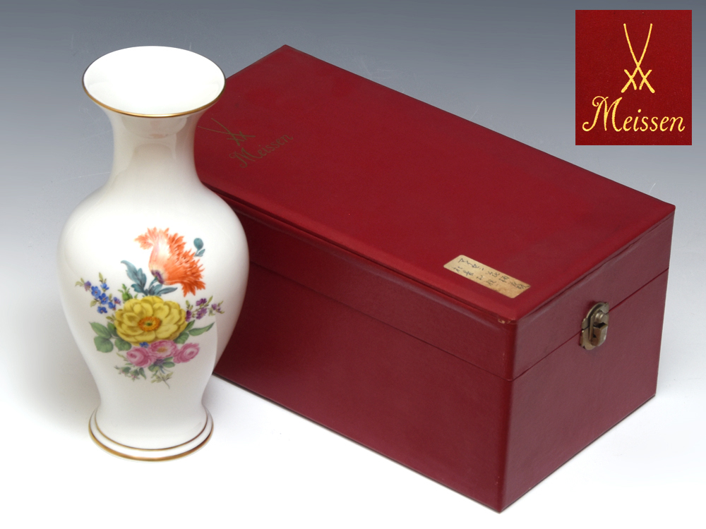 MEISSEN マイセン 手彩色花絵花瓶 元箱 花器 花入 花生 フラワーベース 西洋陶磁器 西洋美術 |