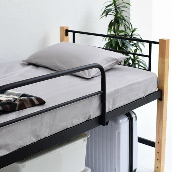 温かみのある天然木とクールなスチールのコントラストがおしゃれな、ちょっと高めのシングルベッドです。 ベッドの下の収納スペースがたっぷり確保されているので、衣類ケースなどもすっぽり収まります。 お部屋の雰囲気にあわせた4カラー展開が嬉しい! |