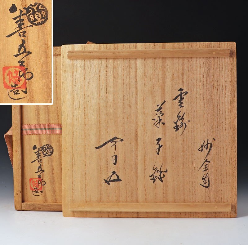 「雲錦」の名は、春の桜を「雲」、秋の紅葉を「錦」に見立てて詠んだ平安時代の歌人・紀貫之の歌「あきのゆふべ たつたがはにながるゝもじぢをば みかどの御めににしきとみたまひ はるのあしたよしの山のさくらは人まろが心には雲かのとのみなむおぼえける」に由来するとされています。 ★商品は永楽善五郎(妙全)造、鵬雲斎書付の作品である事を保証致します。 |
