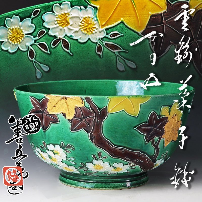 | 【古美味】永楽善五郎(妙全)造『鵬雲斎書付』雲錦菓子鉢 茶道具 保証品 |