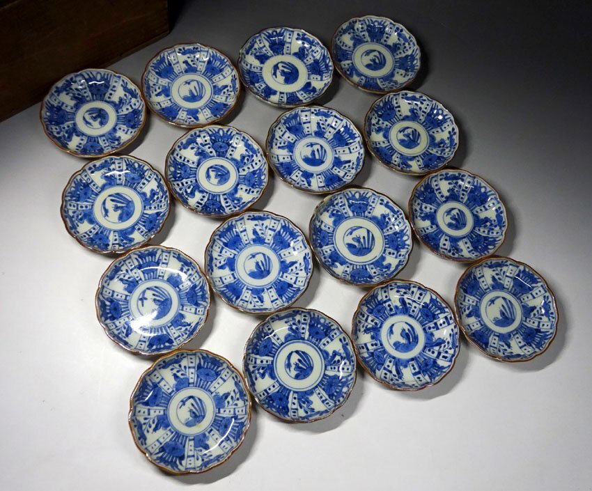 中古品 経年の汚れ、スレ、高台ホツ、2点修繕、箱蓋無し |