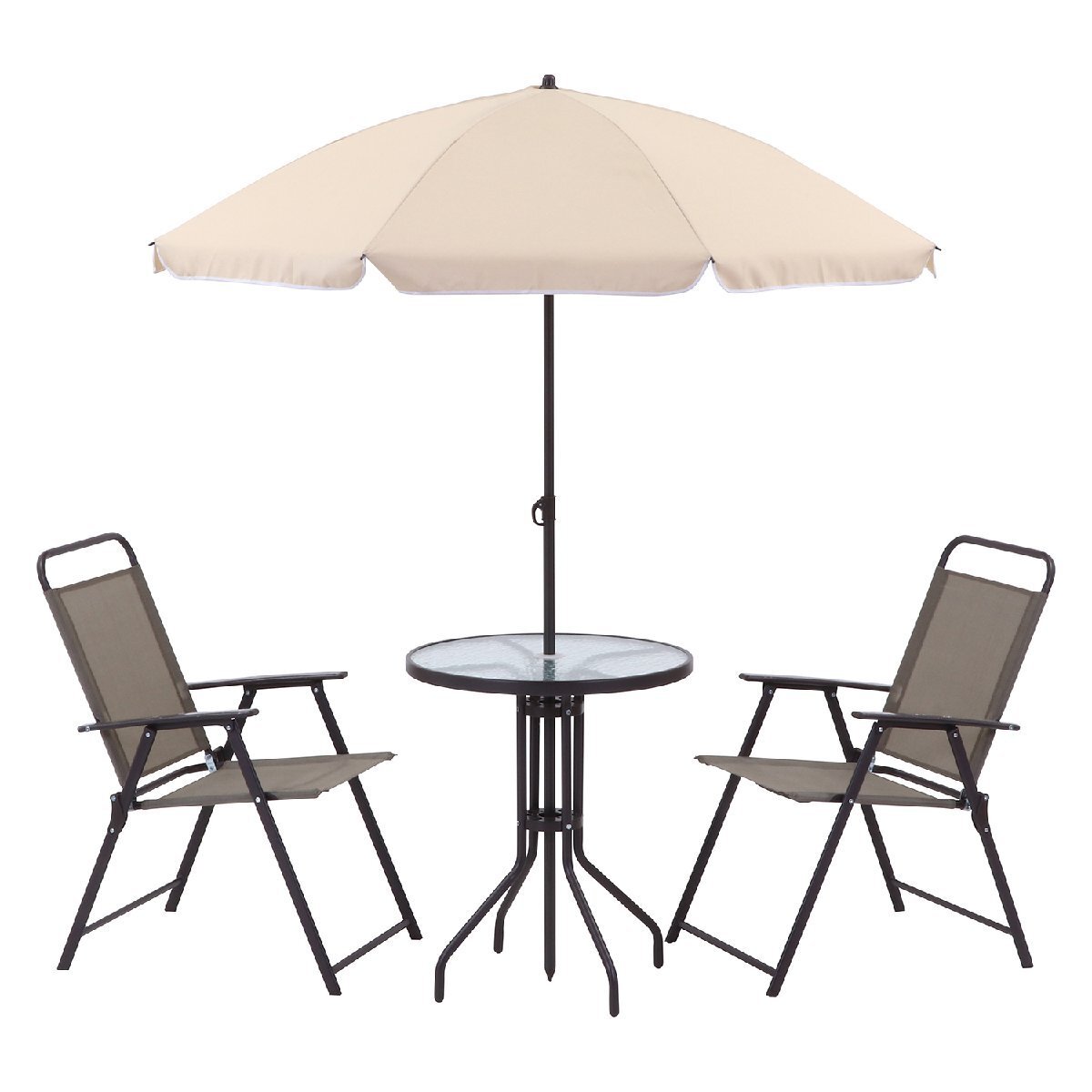 | 備 考 | ■パラソル、テーブル、チェア2脚のお得な4点セットです。 ■キャンプはもちろん、お庭やベランダで優雅なティータイムを。 |