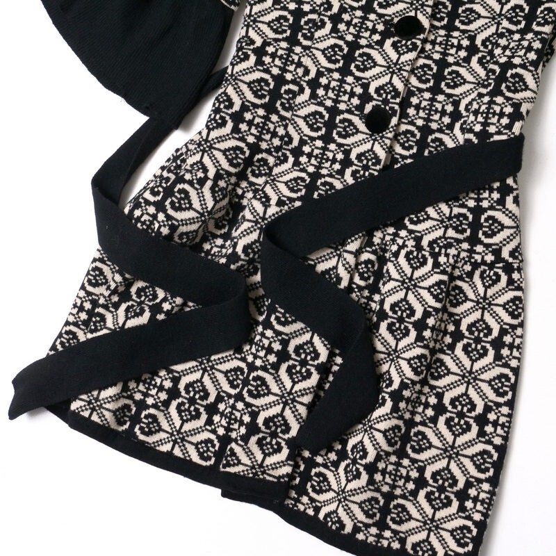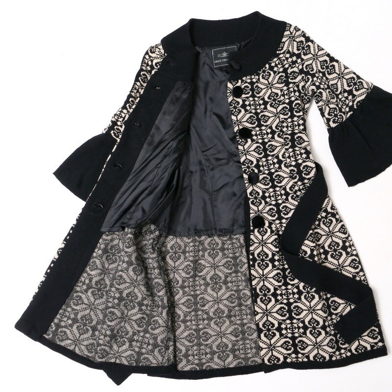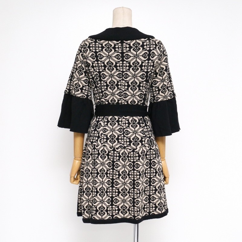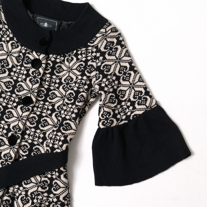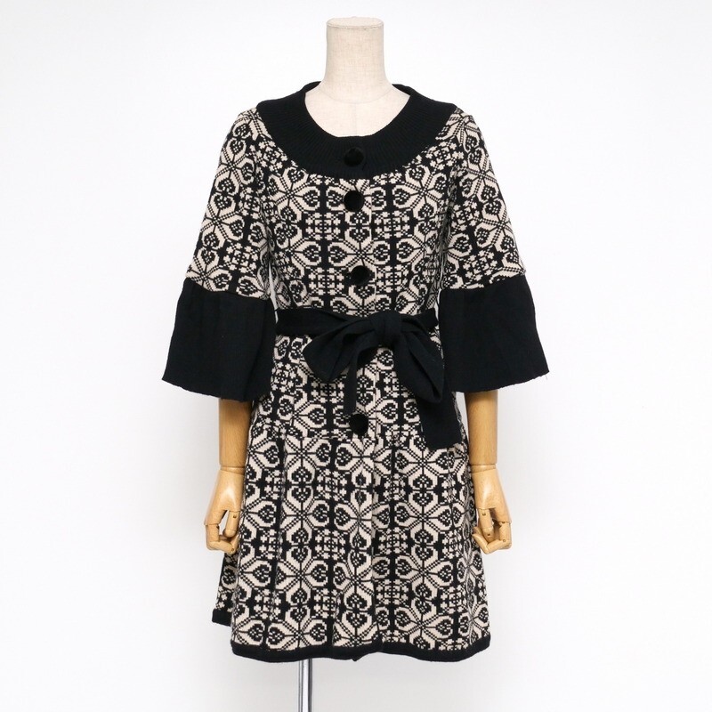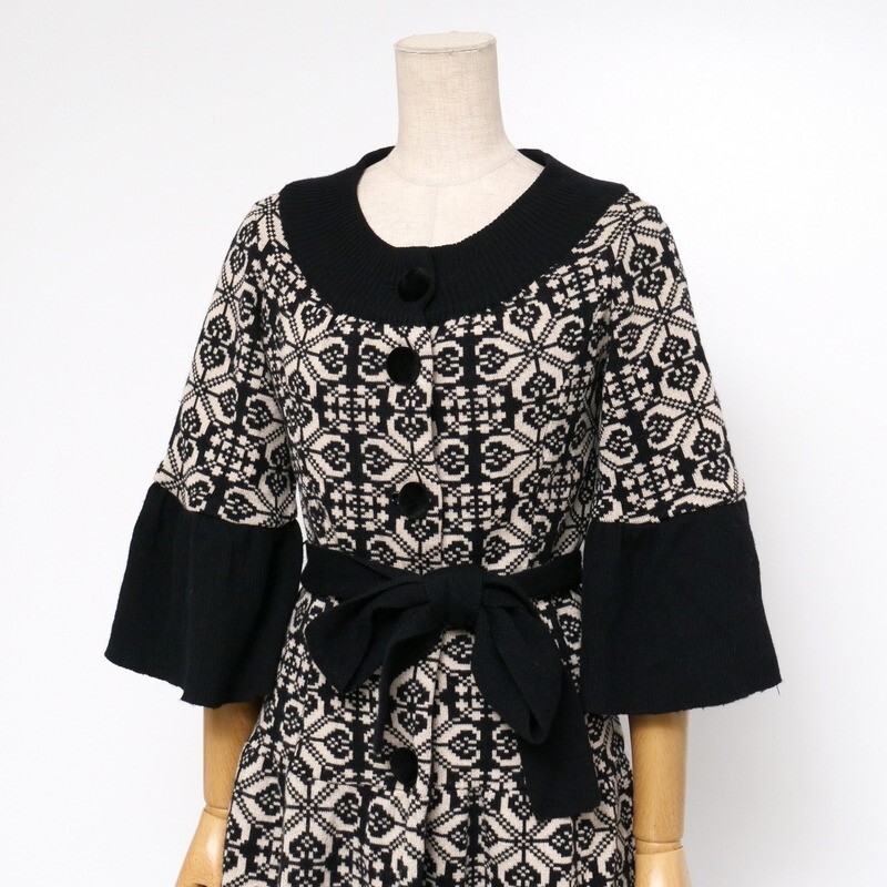 | TJ6460★GRACE CONTINENTAL グレースコンチネンタル ウール 総柄 七分袖 ニットコート コーディガン ブラック×ベージュ サイズ36 | |||
