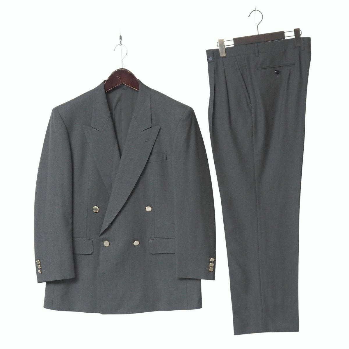 | TJ6377◎LANVIN ランバン ウール 4B ダブル スーツ セットアップ ジャケット + 2タック パンツ トラウザーズ グレー系 サイズR50 | |||