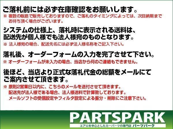 商品到着後、お取付前・塗装前に、必ず取付予定車輌と商品の仮合わせを行ってください。 万全の注意を払っておりますが、万一、お届け商品が破損あるいはご注文と異なっていた場合など、商品到着後7日以内にご連絡ください。 商品到着後7日間が過ぎた商品、既に塗装・お取付けされた商品、お客様側でのご注文間違いなどは、返品・交換をお受けできかねますので予めご了承ください。 また、初期不良などによる返品や交換の場合でも、お取り付けの際にかかった工賃や費用、車輌の損害などは 保証しかねます。 |
