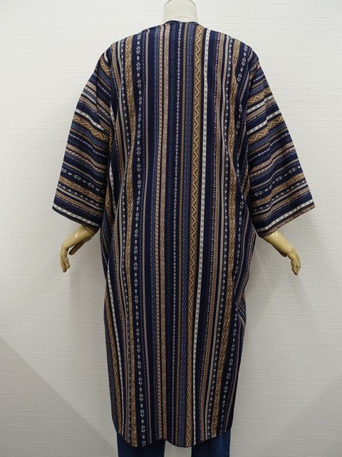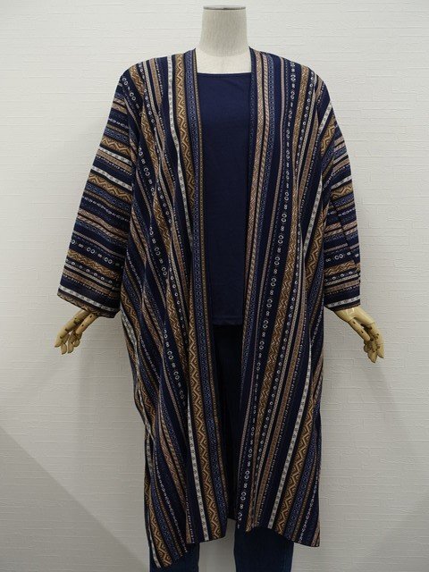 長袖 トッパーカーディガン M ネイビー×ブラウン×ホワイト 民族柄 【メール便可】