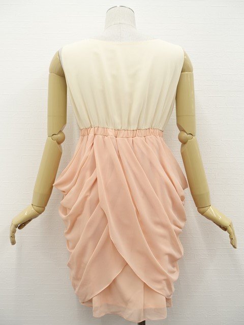 ひざ丈 ノースリーブ Uネック シフォン ドレス ワンピース M クリーム/コーラルオレンジ