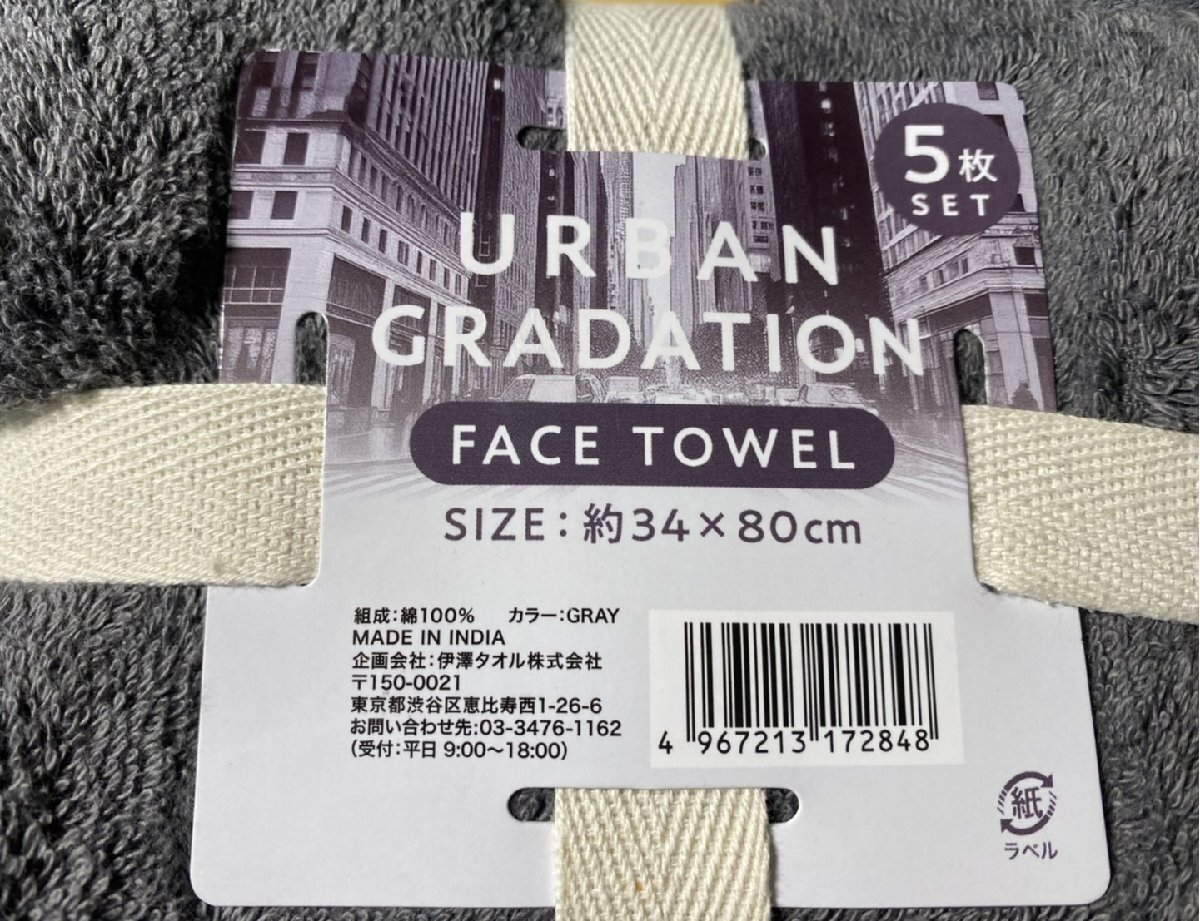 フェイスタオル 34cm x 80cm 5枚組 グレー