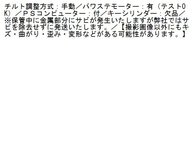 | 商品情報 | チルト調整方式:手動/パワステモーター:有(テストOK)/PSコンピューター:付/キーシリンダー:欠品/※保管中に金属部分にサビが発生いたしますが弊社ではサビを除去せずに発送いたします。/【撮影画像以外にもキズ・曲がり・歪み・変形などがある可能性があります。】 | ||