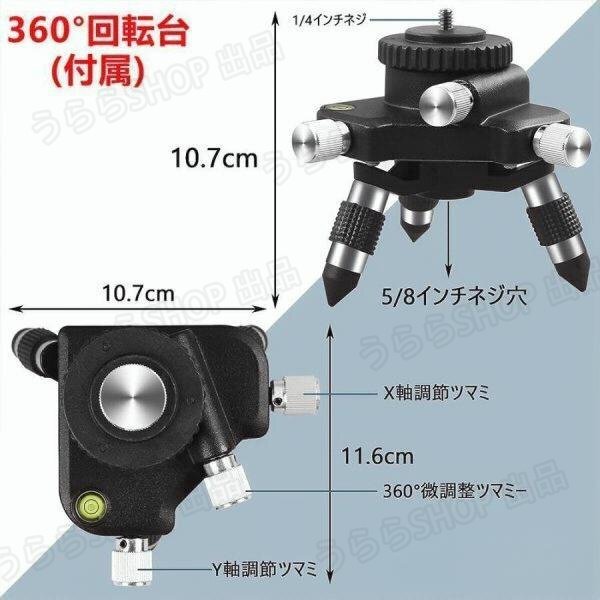 【パッケージ内容】 1 x16D 4 x 360°緑色レーザー水平計、2 x 4800 MA大容量リチウム電池、1 x充電器、1 x 360°回転シャーシ、1 xサスペンションブラケット、1 x昇降プラットフォーム、1 xリモコン制御装置、1つの布袋、1つの説明。