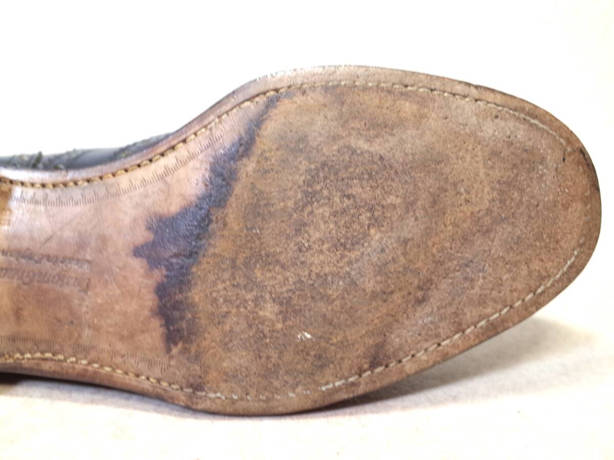 ユーズドのため、経年保管ならびに使用に伴うスレやキズ、シワ、スリキズ、スレ痕、アタリ痕、軽いヘコミ、ライニングのトゥ先端にイタミなどございますが、その他の状態は大きなダメージもなく全体的に良好だと思います。