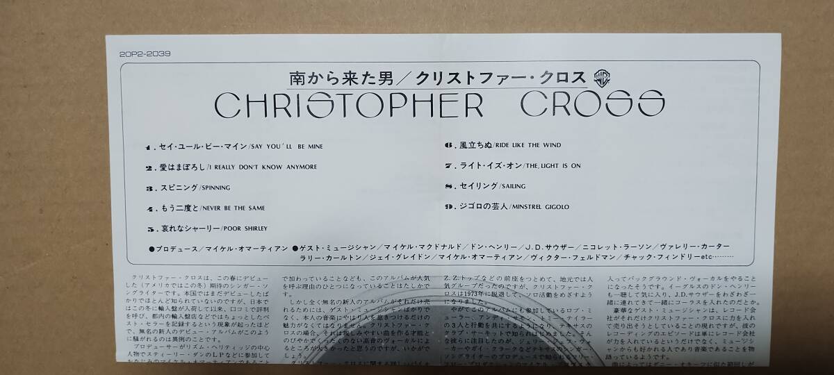 クリストファー・クロスの、「南から来た男」のCDアルバム盤になります。| 出价者 | 信用 | 价格 | 时间 |