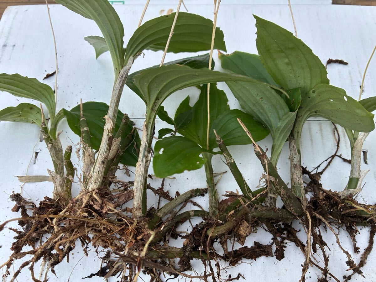 コクランです。写真のもの全てが出品です。花いろは黒みがかったえんじ色です。地味な色ですが味のある花です。古代の人が好んでまだ多様な深みの感じられる花です。発送はネコボスで送ります。葉は冬に吐かれますので根の部分をしっかりと巻いて送ります。