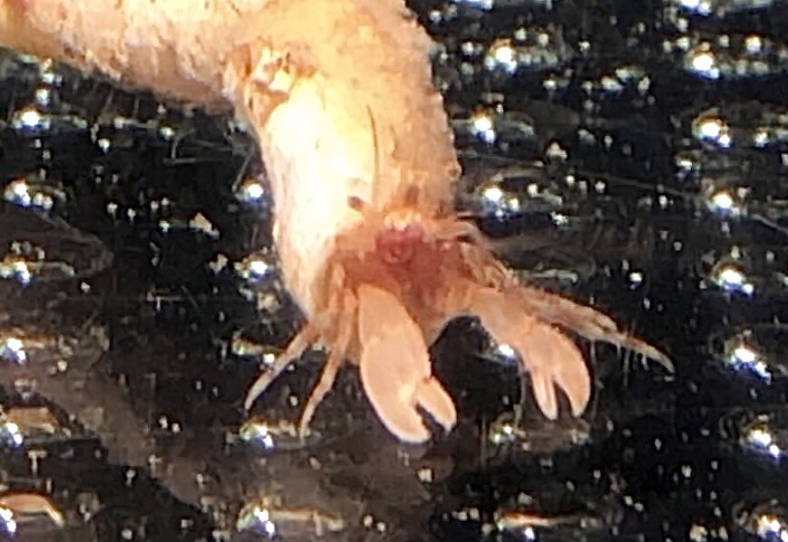 水深110メートル付近から上がってきたリュウウグウカズラの中で暮らすオキヤドカリさんです