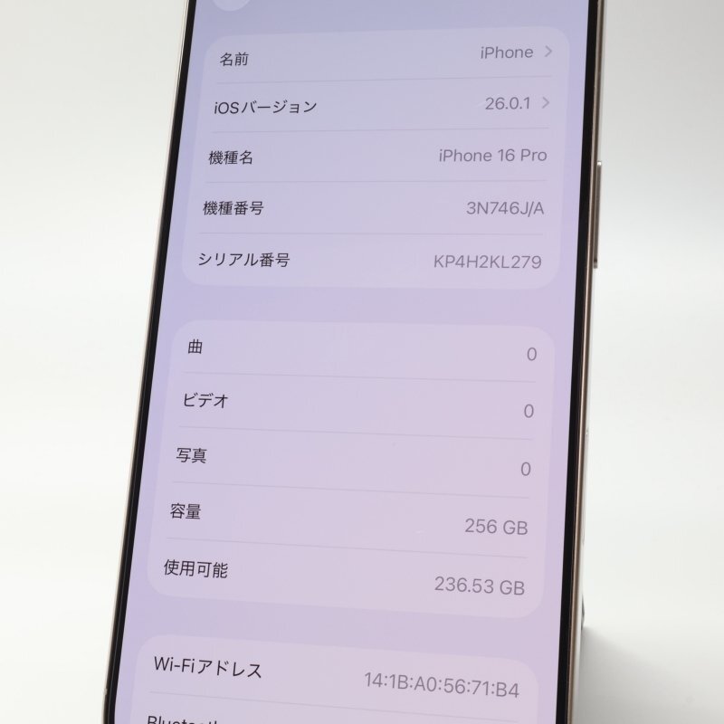 店頭展示品です。■機種 : iPhone16 Pro 256GB ナチュラルチタニウム A3292 3N746J/A