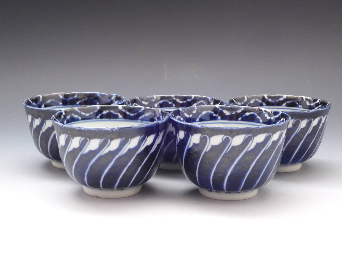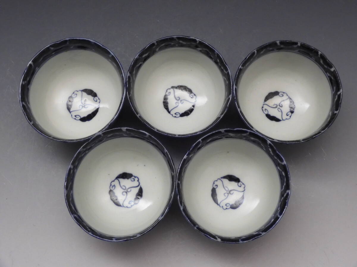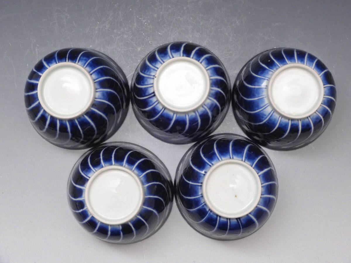 | ○梗○古伊万里 染付 捩文 鉢 向付 蕎麦猪口 5客 懐石 無傷 江戸期 K147◇ |