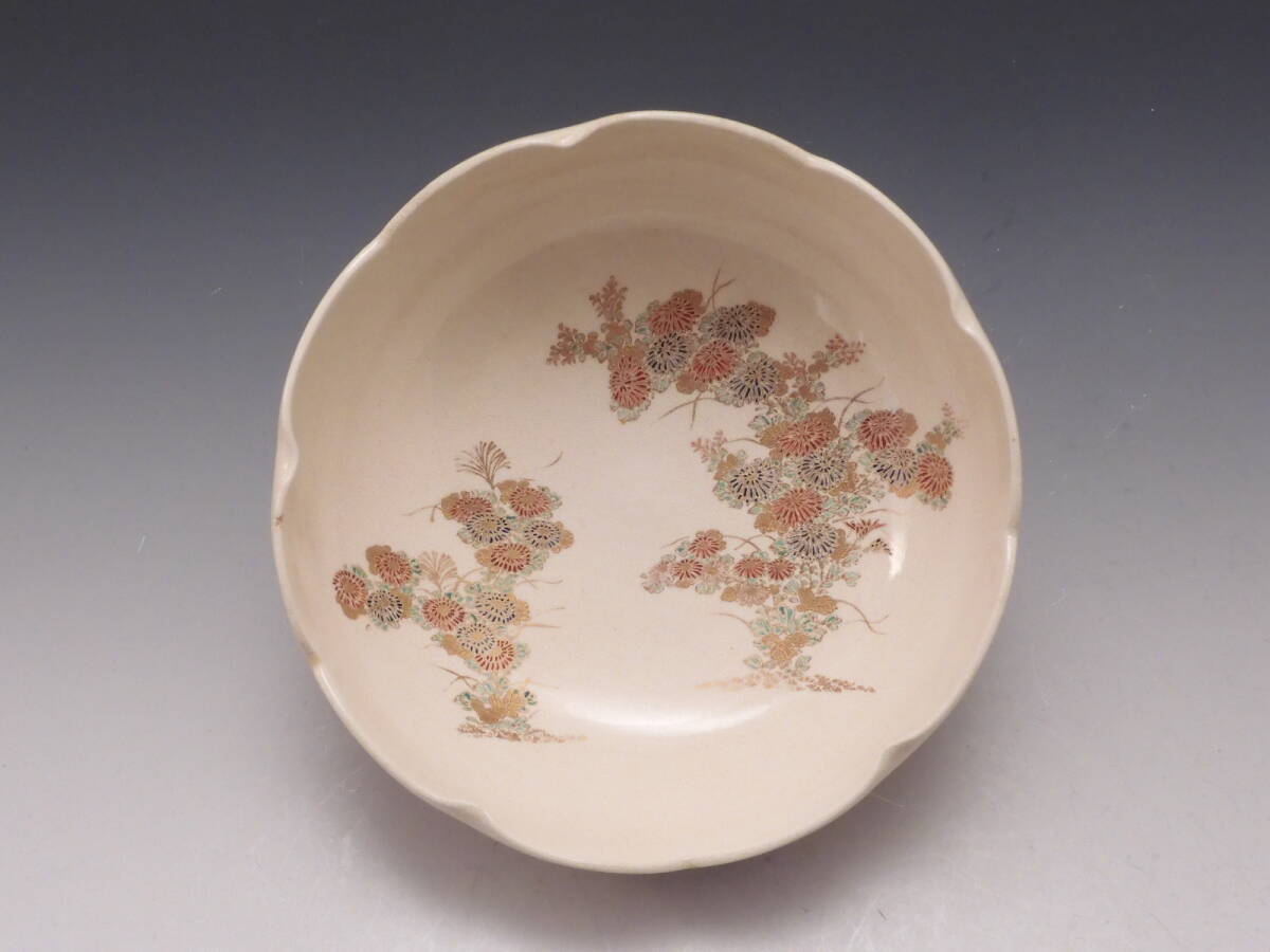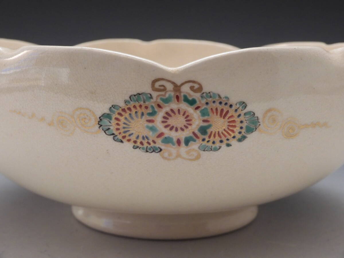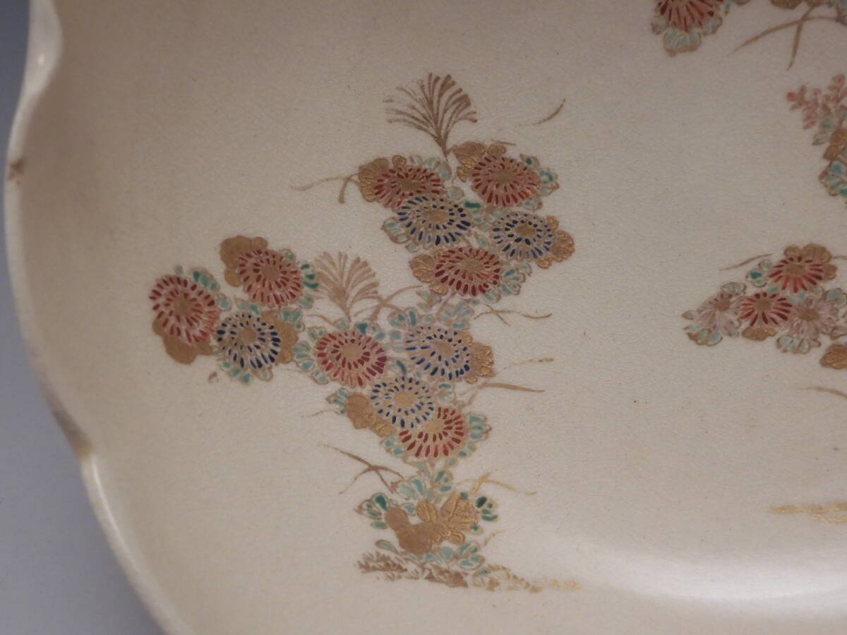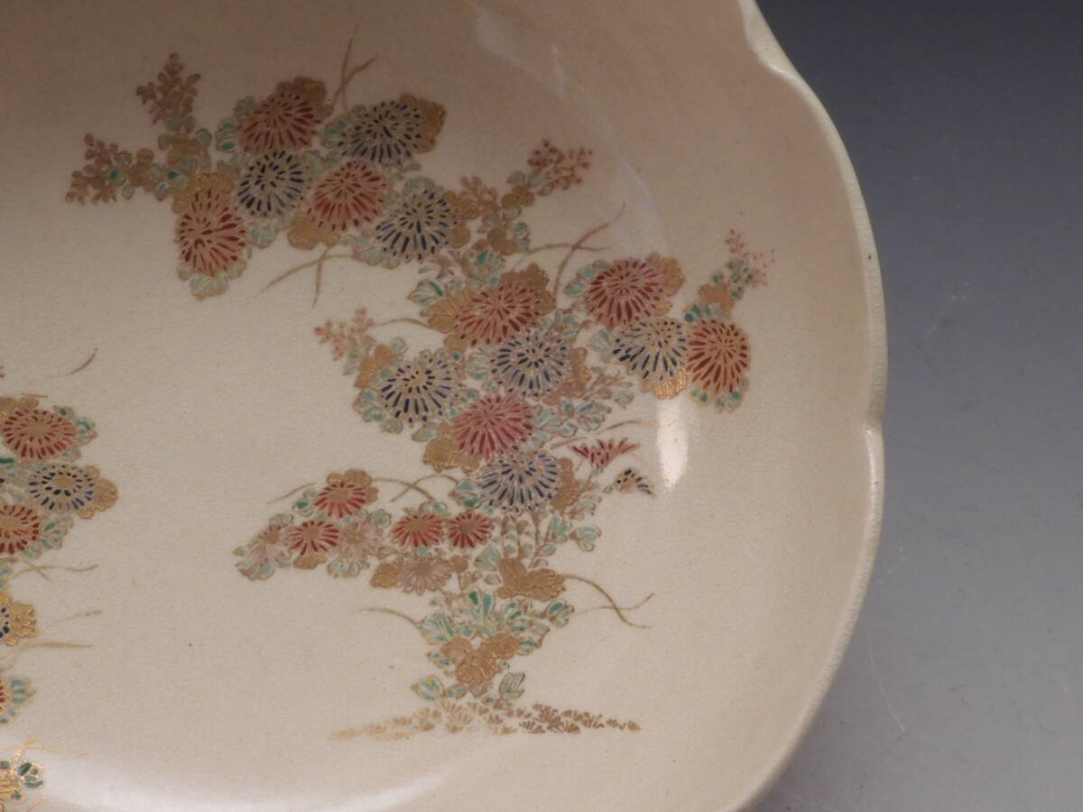 | ○梗○古薩摩 金彩色絵 花草文 輪花 飾鉢 19㎝ K282◇ |