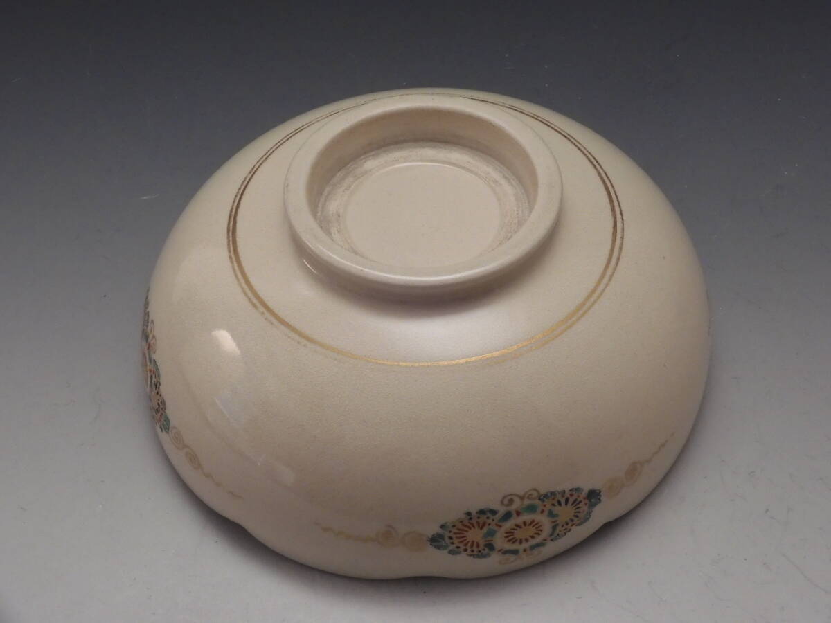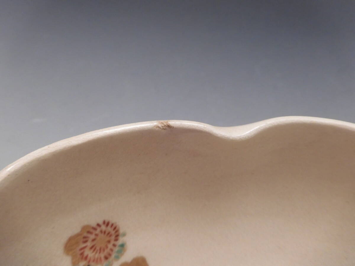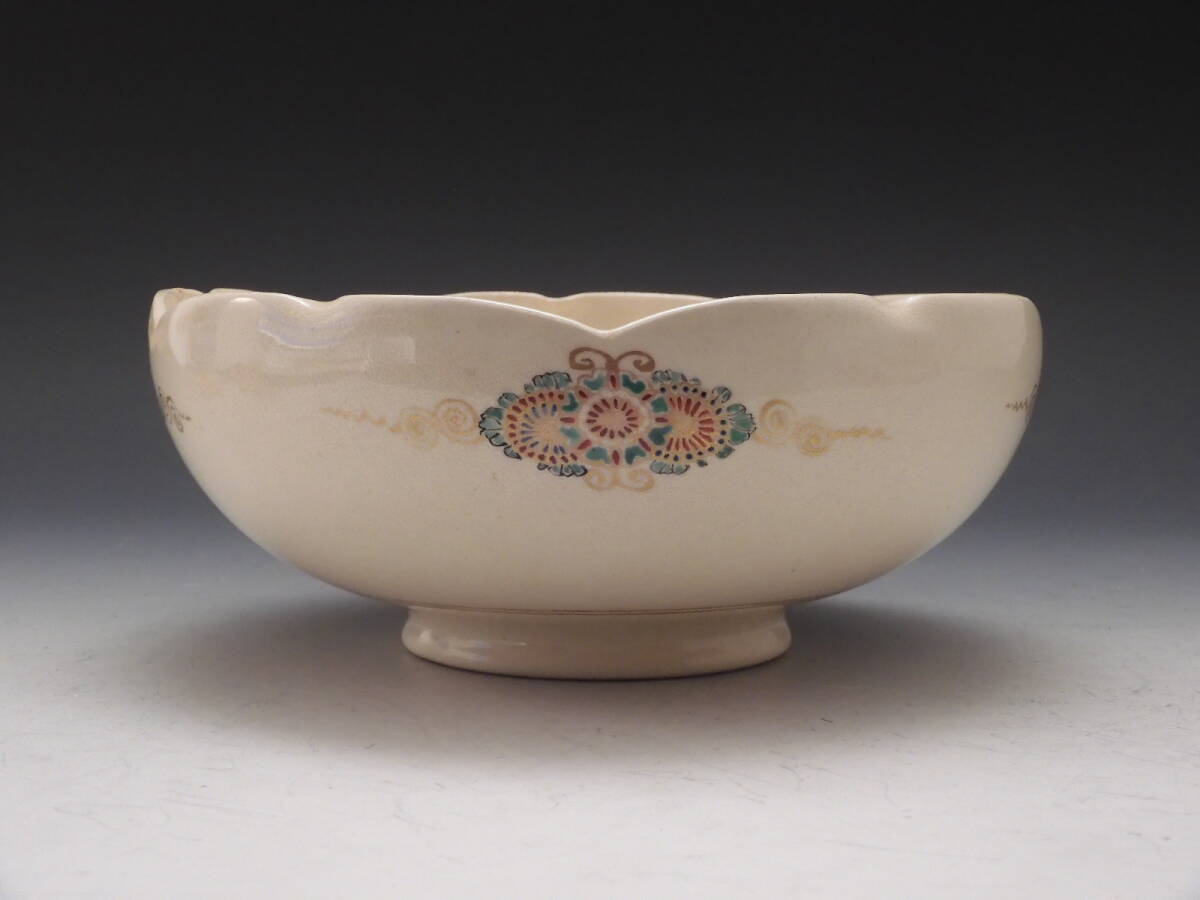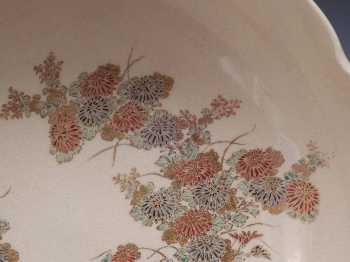 | ○梗○古薩摩 金彩色絵 花草文 輪花 飾鉢 19㎝ K282◇ |