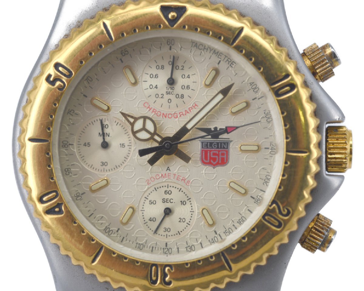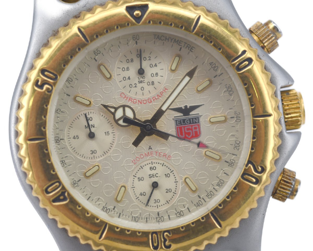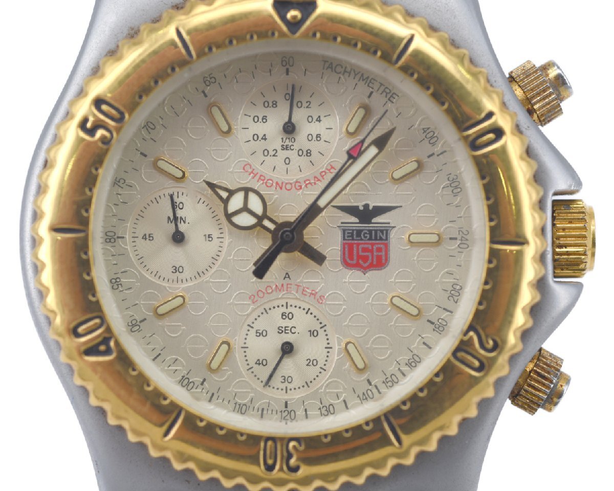 ナナハチヤは、掘り出しモノがいっぱいあります。 [中古品] 稼働品【ELGIN】 エルジン メンズ FK-528 クロノグラフ ゴールドカラー クォーツ 中古品のご案内です。 コンディションといたしましては、通常使用程度の中古商品でございます。 稼働品でございます。 時刻も合っております。 針回しもできました。 ベゼルも逆回転防止が確認できました。 リューズの締め込みもできました。 クロノグラフにつきましては、スタート、ストップはできますが、 5時位置のリセットボタンが固着しているため、押すことができませんでした。 時計の機能につきましては、ご使用いただけますのでご安心いただけましたら幸いでございます。 ぜひ、ご検討ください。 人気の定番商品をお安くご提供させていただきます。 当店の商品につきましては、全商品お客さまもご納得の掘り出し物オークション・販売価格です。 ぜひ、ご検討ください。 |