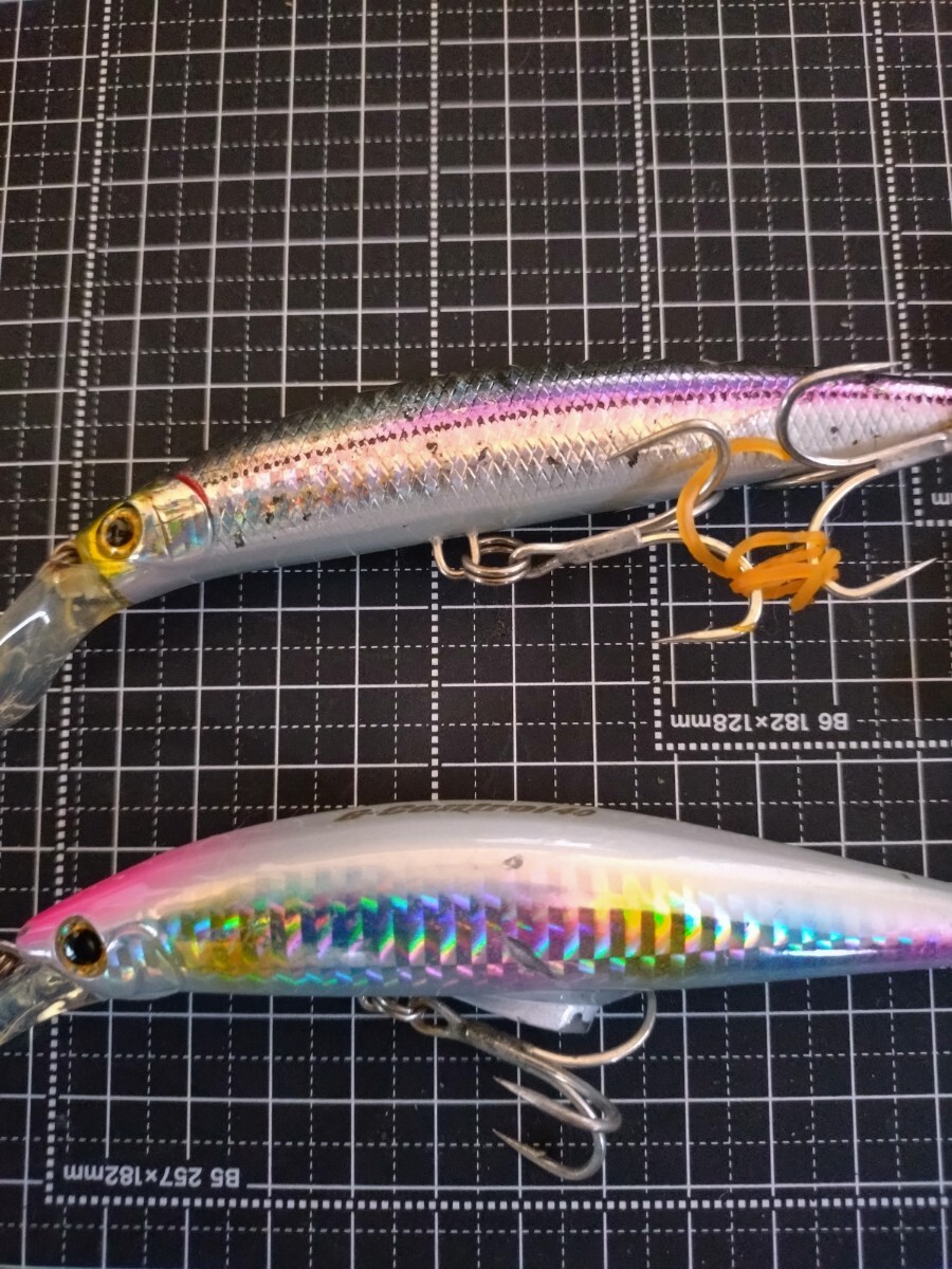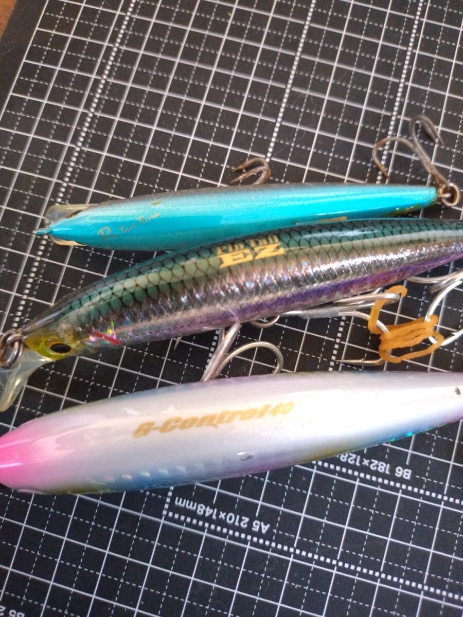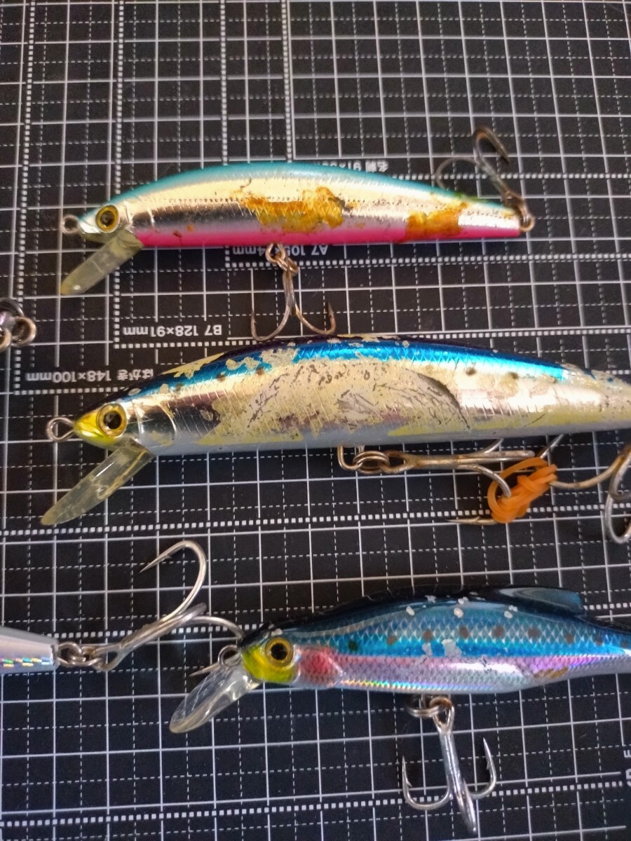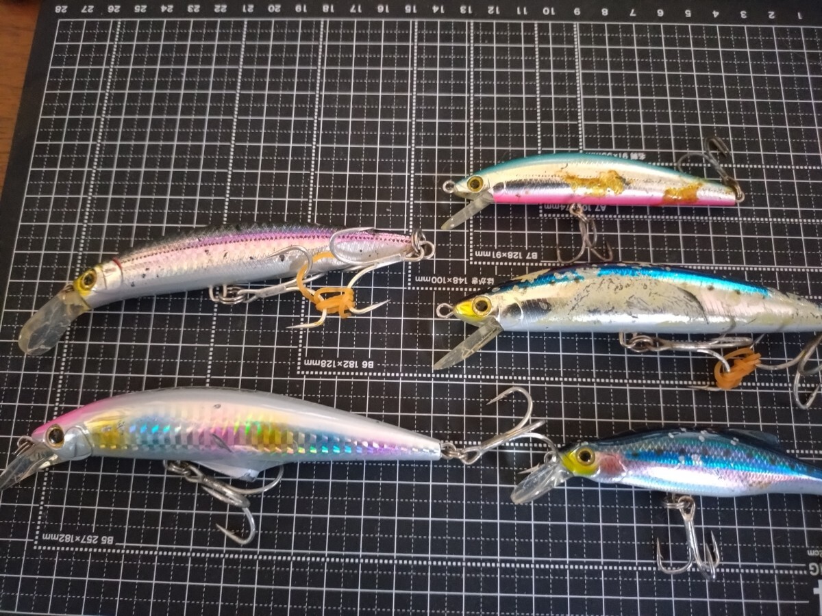 ジャクソンピンテール各種5本です。アクションには問題ありませんが写真の通り使用感はあります。タイプは写真のルアー背面をご確認下さい。よろしくお願いいたします。
