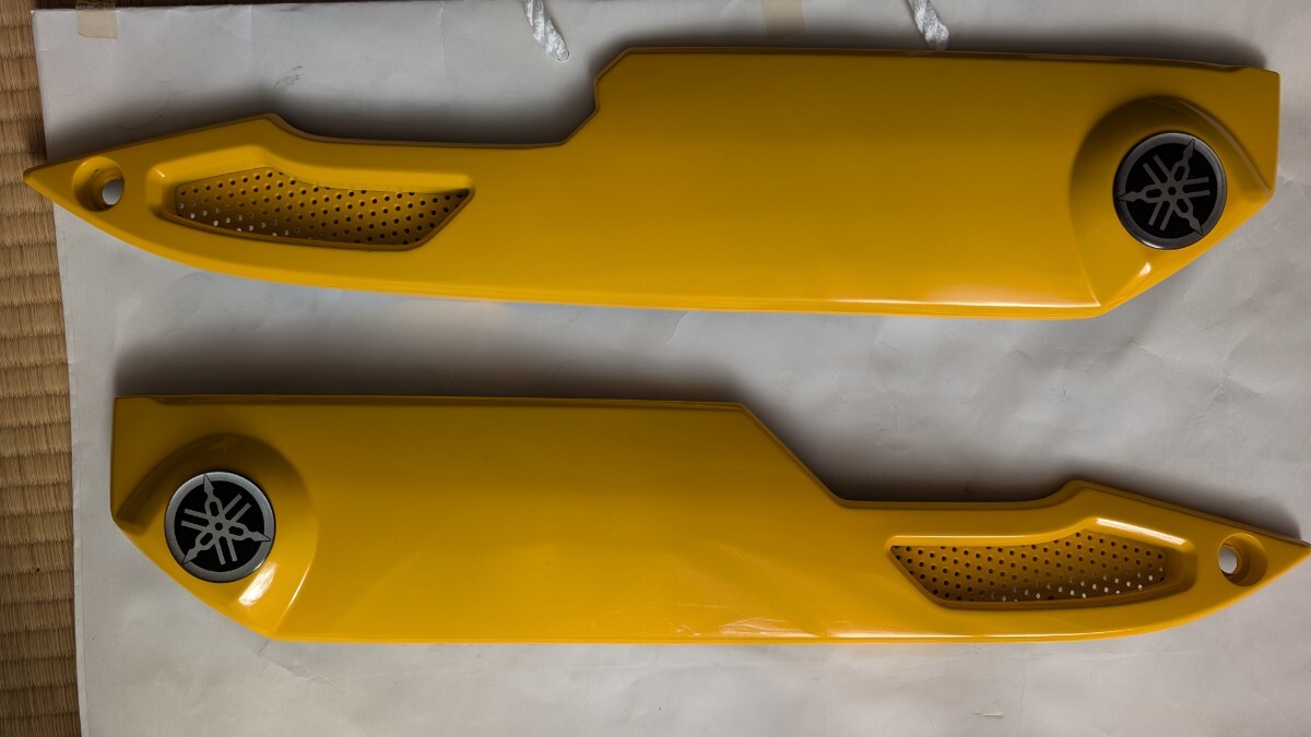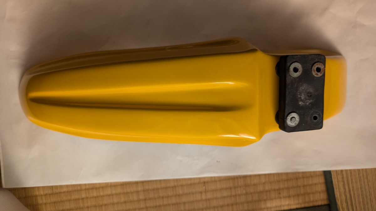 当方のトリッカーにつけましたが、目立ちすぎたため取り付け手1回しかツーリングしてませんので、出品いたします、 カラーはパールシャイニングイエローに塗っております、下地はウレタンプラサフから、ビート純正イエローに塗っております、ウレタンクリアー仕上げで少々失敗もありますが、クリアは磨いていませんたっぷりクリア吹いているのでかなり光沢でております、アンダガードもワイズギアなのでオススめです、ノーリターンノークレームの着払いにてよろしくお願い致します。