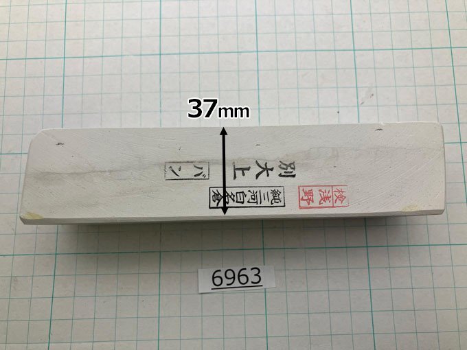 1マス=10ミリの方眼紙の上に置いて撮影しました。 希少な上質砥石です。