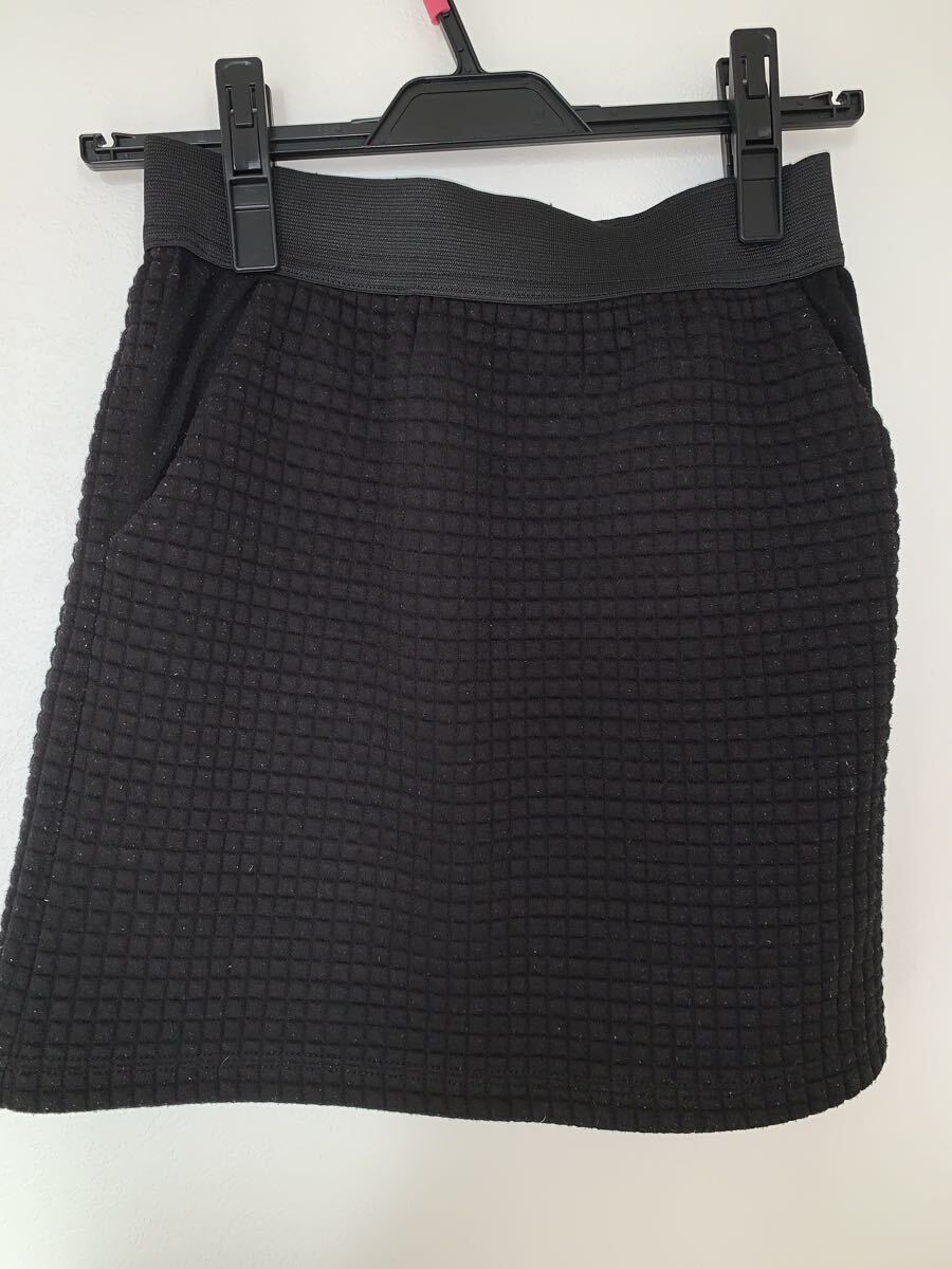 黒色のミニスカートです。ワッフル生地のような凹凸のある素材で、ウエストはゴムになっています。両サイドにポケットが付いています。| 出价者 | 信用 | 价格 | 时间 |