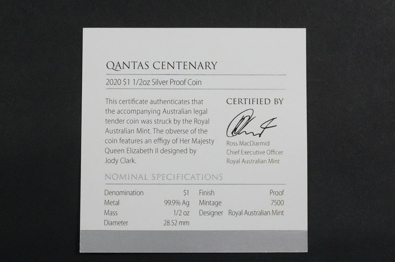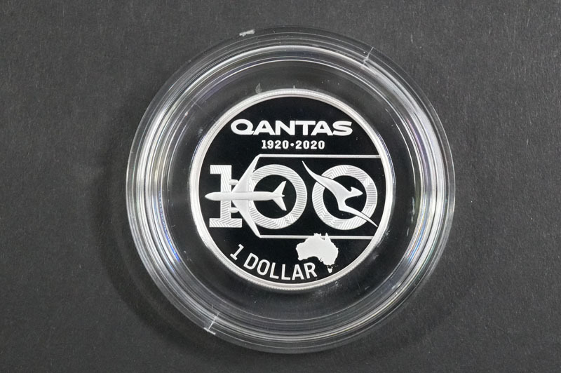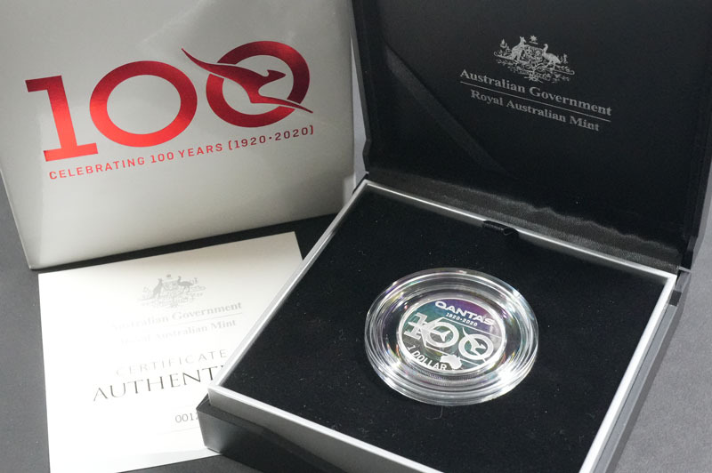 1円~【L87】銀貨 オーストリア カンタス航空100周年記念 2020年 1ドル 1/2オンス シルバープルーフコイン ケース付