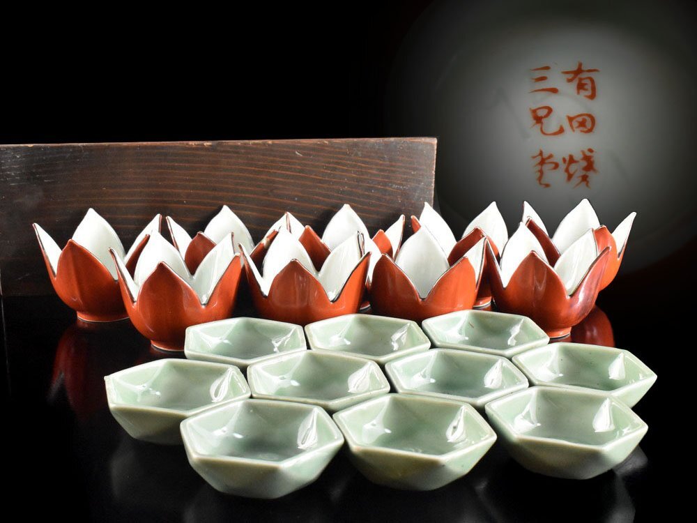 | 商品名 | 【雲】某名家買取品 有田焼 三兄堂 花形小鉢 9客 青磁六角小鉢 10客 計19客 箱付 古美術品(懐石料理道具)CY2839 OThnhbls |