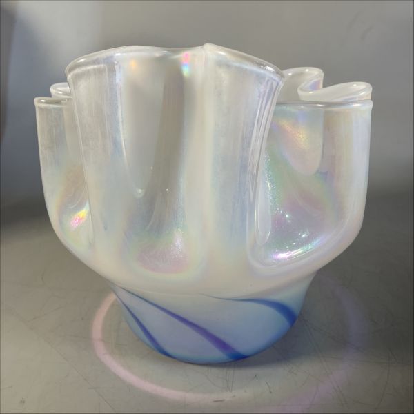 | L2-342 工芸ガラス 花器 フラワーベース 昭和レトロ ビンテージ 新古/展示品 ブルー/ピンク/オーロラ |