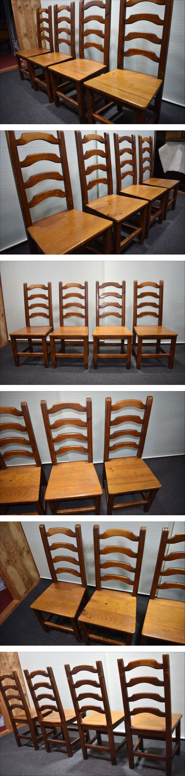 ■ヴィンテージ■パイン材/無垢/ラダーバック/ダイニングチェア/4脚セット/ハイバック/カントリースタイル■ | |||