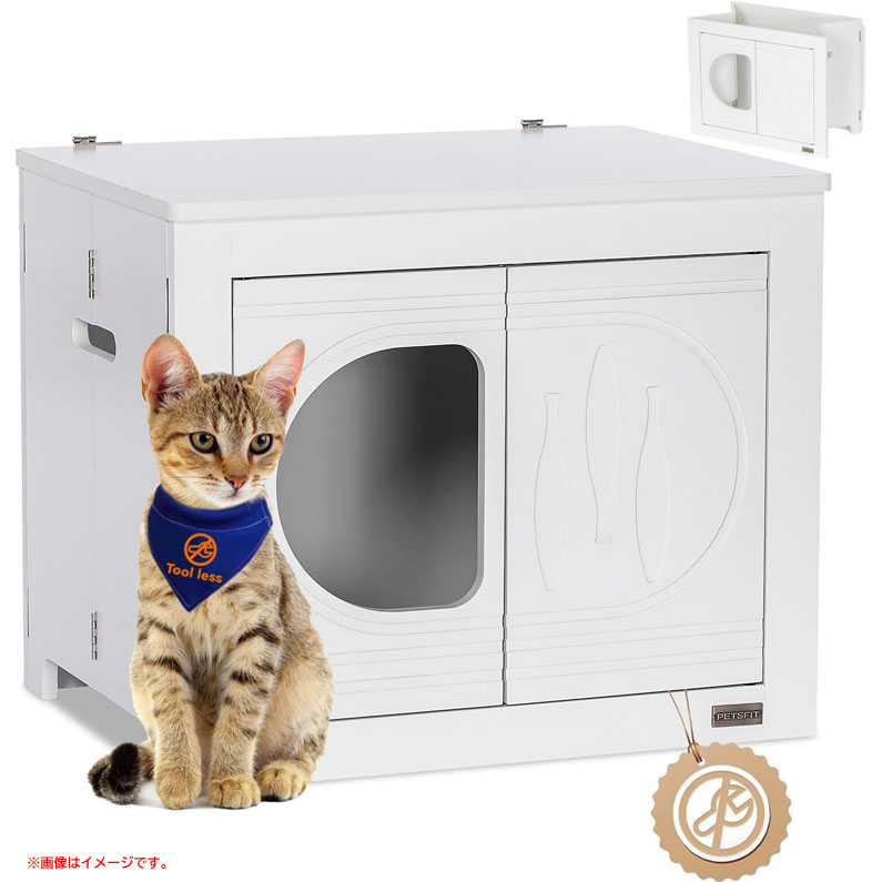 【商品特長】 ◆ツール不要で簡単設置 組み立てる手間がかからず、猫トイレラックを広げるだけで使用できます。 1ステップで簡単に折り畳むことができ、収納場所にも困ることがありません。 急な来客時などにすぐに折り畳むことができて便利です。 ◆収納ラックとしても使える 猫トイレをそのままリビングに置くよりも、お部屋のインテリアとの調和性を保つことができ、 リビング空間の雰囲気を損なう心配がありません。 また、上部スペースを収納ラックとして使用することができるので、インテリア小物や雑貨など収納して、 おしゃれにリビング空間を演出したり、よく使用する猫用品をひとまとめに収納したりすることもできます。 ◆猫砂の飛散防止 ハーフカバータイプの猫トイレはどうしても砂の飛散を防ぎきれない可能性があります。 トイレ収納ラックであれば、中に収納し扉を閉めれば砂の飛散を防ぎます。 ◆掃除ラクラク ラック内でこぼれた砂は、扉を開けることで、集めやすくなるので、 掃除も楽に行えます。 | |||||||