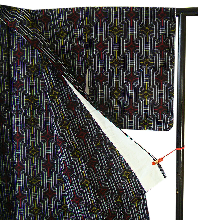 | 商品説明 | こちらのお品は「単衣」ですので、5月、6月、9月にお召頂ければと思います。 着物には、大きく分けて「袷(あわせ)の着物」と「単衣(ひとえ)の着物」と「夏着物」があります。 反物(表地)を着物に仕立てるときに、裏地類をつけるものを袷の着物、 つけないものを単衣の着物と呼び、胴裏や八掛といった裏地がつかない一枚ものの着物です。 また裏地がないため、座る時などにヒップのラインが目立たないよう、 居敷当て(いしきあて)の生地をつけることもあります。 居敷当ては付いておりません。 素朴な味わいが特徴の久留米かすりの仕立て上がりの着物です。 久留米絣は、国の重要文化財に指定されている「綿」の織物です。 「絣」と呼ばれる織りで表現された模様は当時12歳の少女が生み出したものです。 江戸時代より続く久留米絣ですが、近年では現代でも使いやすいように クラシカルだけどモダンなスタイルとして注目されています。 しなやかな重めの手触り良い久留米かすり、 黒色地に赤、灰白、黄色等の織柄、幅広い年代の方にお召頂けます。 |