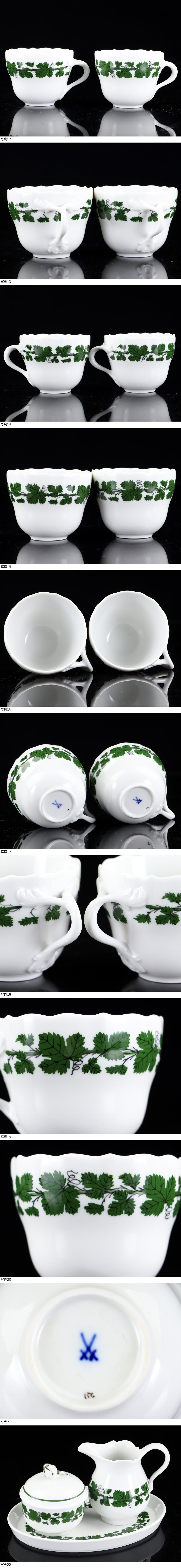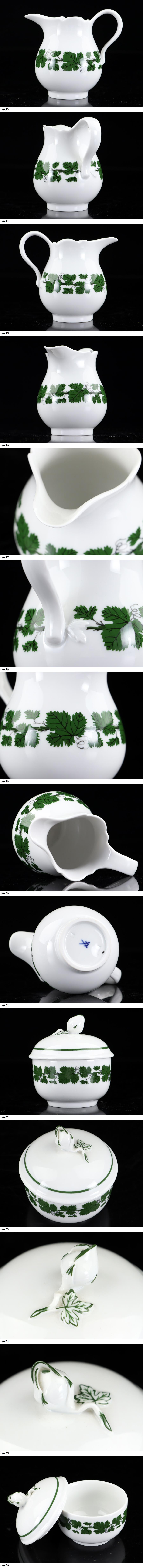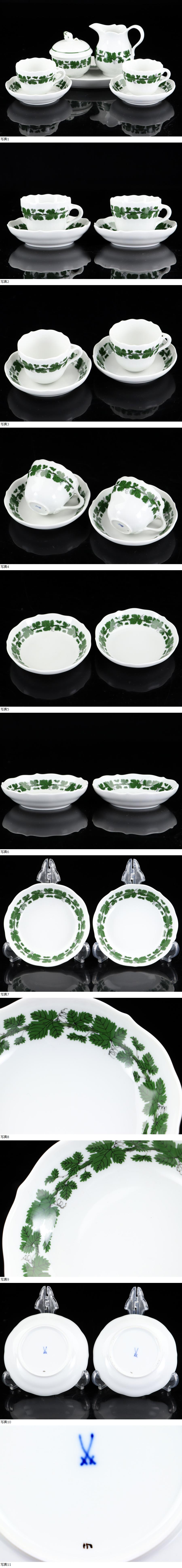 サイズ(約) カップ:高さ 5.5㎝/口径 6.5㎝ ソーサー:高さ 2.5㎝/直径 10.5㎝ クリーマー:高さ 9.5㎝/横 10.5㎝/幅 7㎝ シュガーポット:高さ 8.5㎝/直径 7.5㎝ プレート:高さ 2㎝/横 18.5㎝/幅 13㎝ 総重量 870g 付属品 - 本物保証 マイセン ヴァインリーフ モカカップ&ソーサー ミルクポット シュガーポット 計7点揃 ティーセット 本物保証 マイセン ヴァインリーフのティーセット7点揃になります。 マイセンはヨーロッパで初めて硬質磁器を生みだしたドイツの名窯です。 1709年、9年の歳月をかけて研究され白磁の製造に成功し、以来、ヨーロッパ最古の窯として世界的な名声を得ています。 こちらは深みのあるグリーンの葉でラインを描いた比較的シンプルなシリーズです。 【状態】使用回数の少ない綺麗なお品です。気になる傷みなどなく良品ですが、底面に薄汚れがあるものもございます。画像参考ください。 希少なセット作品です。大事にしていただける方の入札お待ちしております。 |