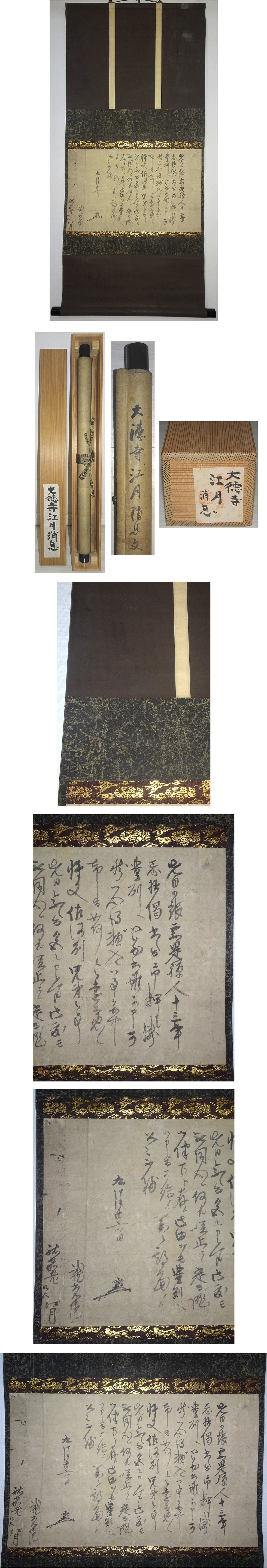 紙本 漆塗軸 真筆保証(真作) 揉み紙三段表装貼り風帯仕立 ウブ幅 杉箱入 中身寸法29.5×48 少し時代等あり 幅自体しっかりしています よろしくお願い致します