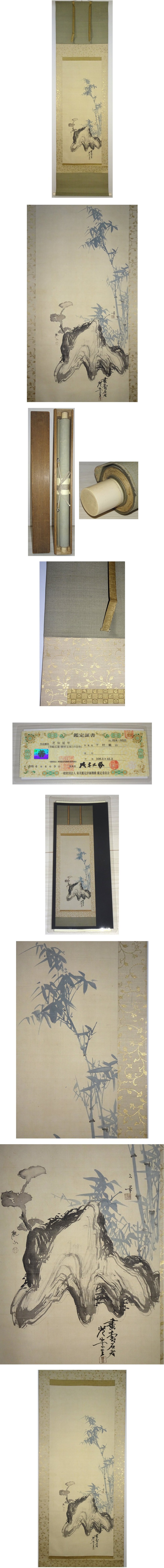絹本 軸 真筆保証(真作) 金襴三段表装風帯つき ウブ幅 桐箱入 中身寸法108.3×41.3 状態良好 幅自体しっかりしています ※東美鑑定評価機構鑑定委員会鑑定証書つき よろしくお願い致します