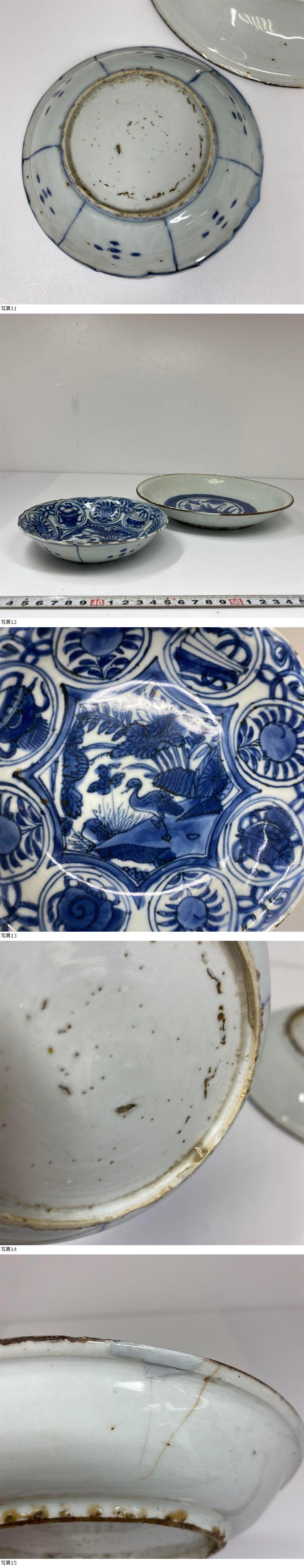 中国明時代Two antique dyeing dishes from the Ming Dynasty, China 中国明時代 古染付皿2枚 直径14.5/20.7㎝ 2