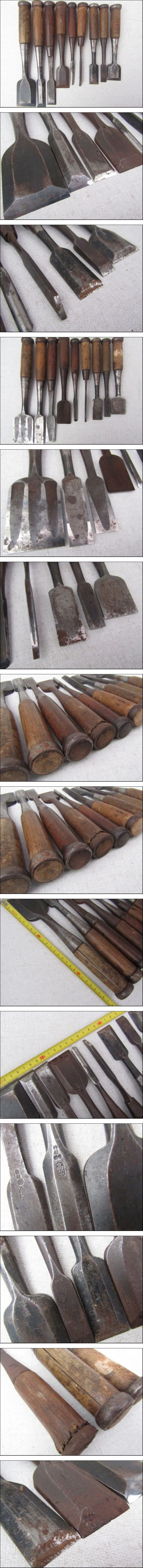 ■■④ 大工道具 のみ 叩きのみ 鑿 高芝他 在銘 サイズ種類色々まとめて9本■■ | |||