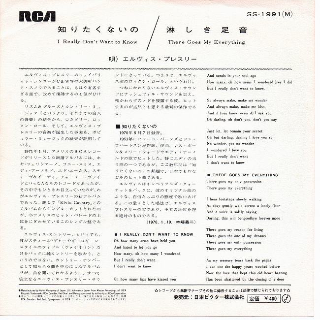 ■【EP盤】エルヴィス プレスリー/知りたくないの・淋しき足音 RCA SS-199(M) ■ |